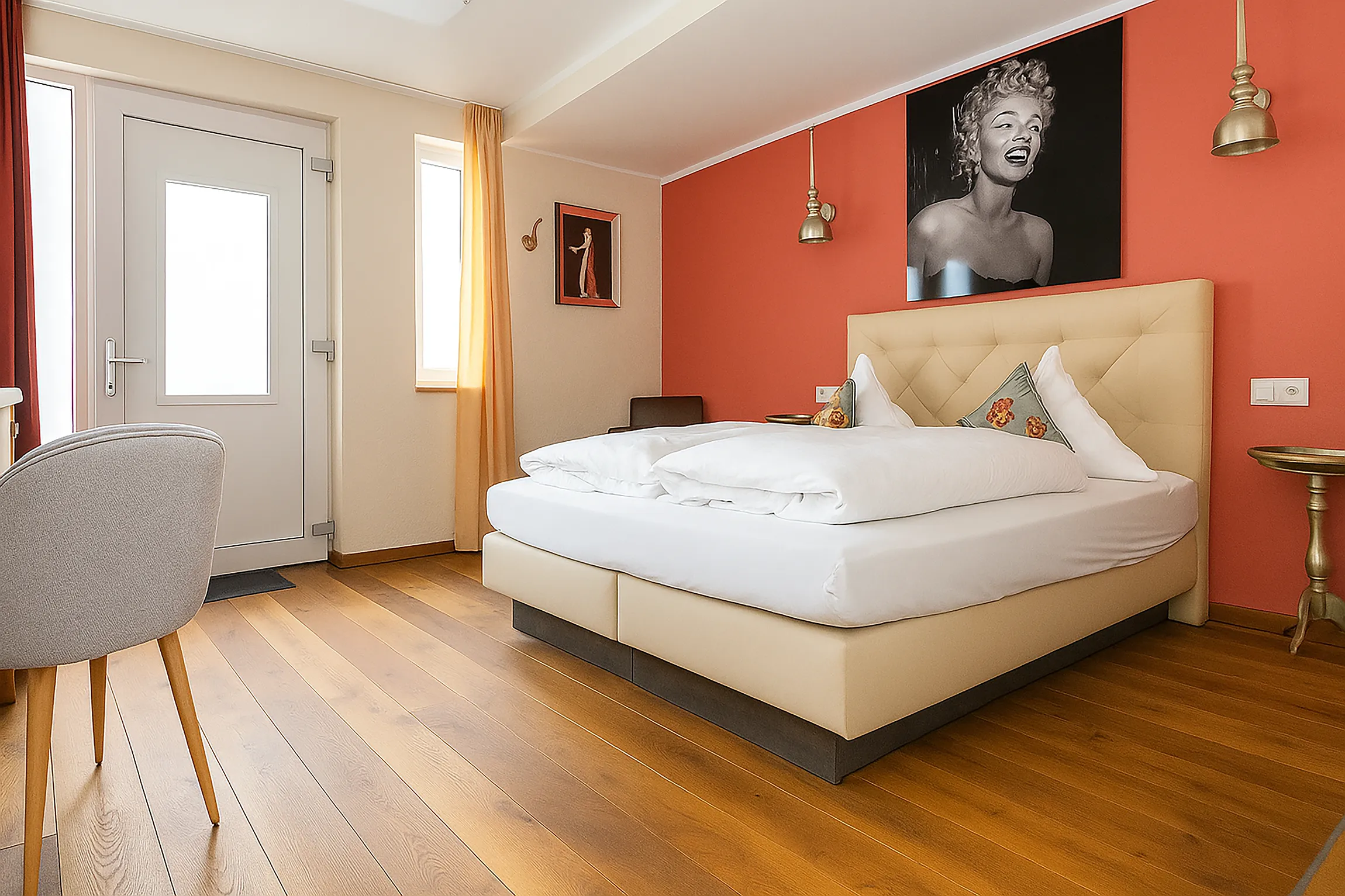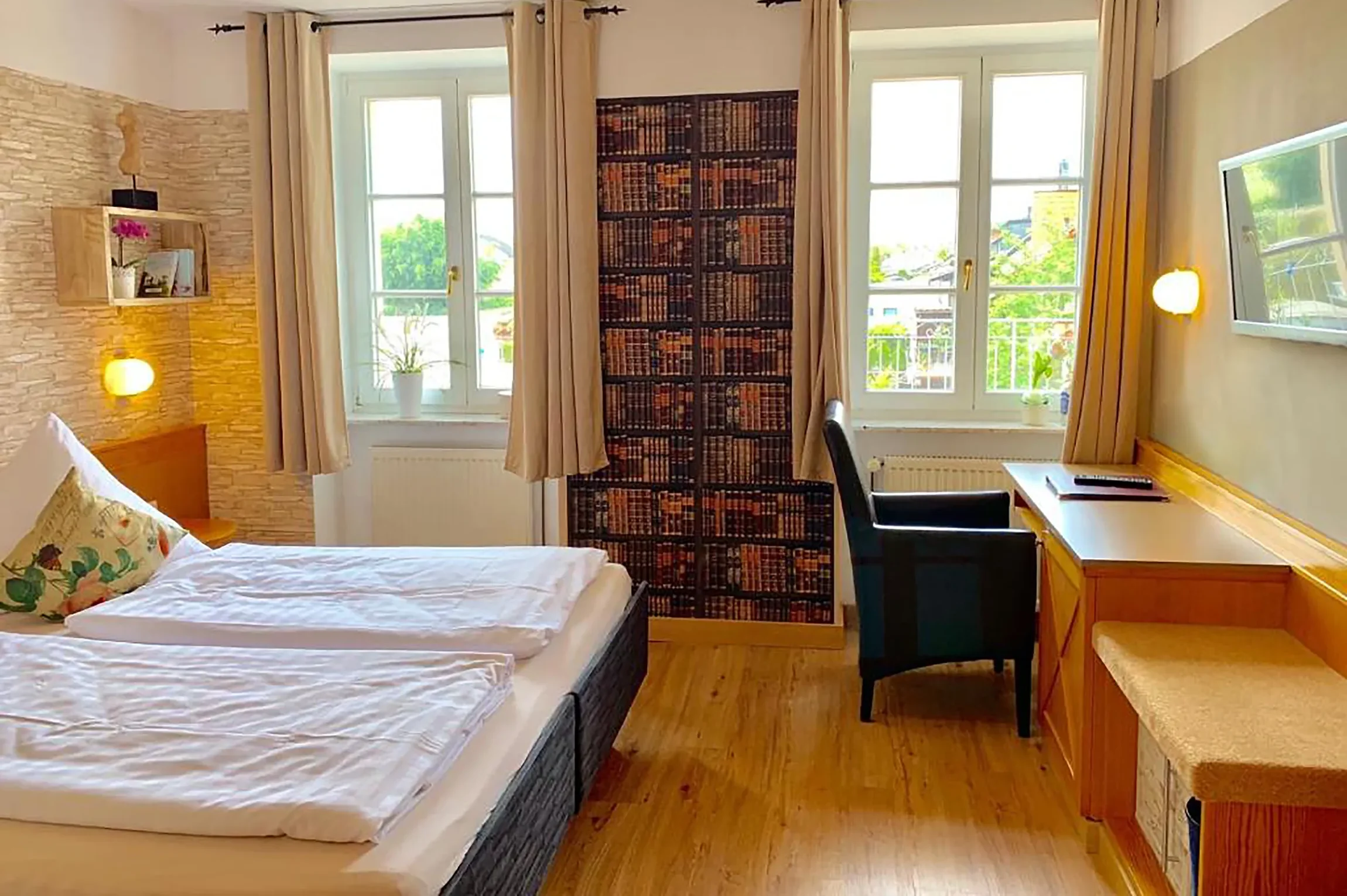 Ob zu zweit oder als Alleinreisender mit dem Wunsch nach mehr Platz – unser Standard-Doppelzimmer ist ein gemütlicher und einladender Rückzugsort. Es verbindet modernen Komfort mit einer warmen Atmosphäre und bietet die ideale Basis, um die Region zu erkunden oder Geschäftstermine wahrzunehmen.